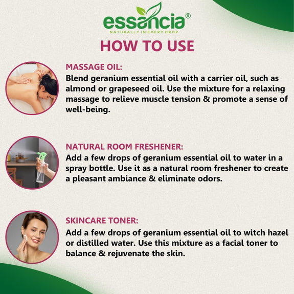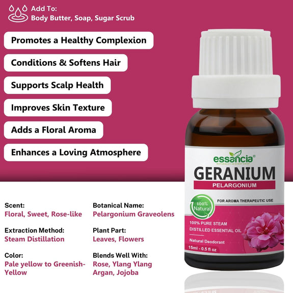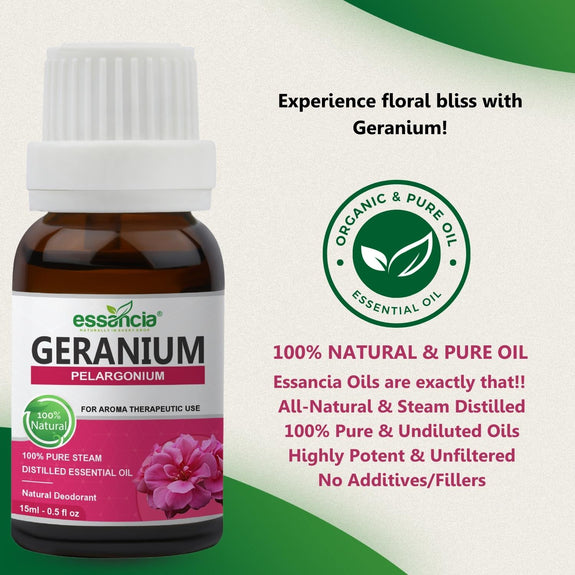 Elevate your self-care experience with Essancia Geranium Essential Oil. Order now and indulge in the uplifting, hair growth-supporting, and skincare-enhancing qualities that this remarkable oil has to offer!
