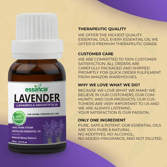 ✔ ESSANCIA 100% SATISFACTION GUARANTEE: Don't Fall Victim To Cheap Diluted Lavender Oil - Most of the competition dilutes their oil with a cheap carrier oil or even other potentially dangerous chemicals. Our Lavender oil is routinely tested for purity and other unique qualities in order to ensure you are buying the purest oil available.